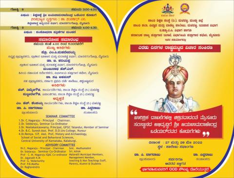 National Seminar on "Chaarithrika Daakalegalalli Chithrithavaadanthe Mysuru Samsthanada Abhivruddhige Shri Jayachamarajendra Odeyer avara Kodugegalu"